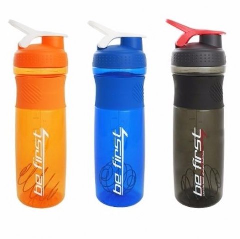 Компания Be First представляет Вам новый шейкер для смешивания спортивных напитков. Удобная закручивающаяся крышка снабжена пупырышками с боковой стороны для лучшего сцепления с рукой при открывании или закрывании шейкера. Клапан, герметично закрывающий носик для питья, соединен с петлей, выполняющей две функции. Во-первых, за нее можно держать шейкер при смешивании, а также на нее можно повесить различные мелкие предметы – ключи от шкафчика, клубную карту и т.п. А во-вторых, эта петля облегчает открывание клапана, точнее делает его более удобным.